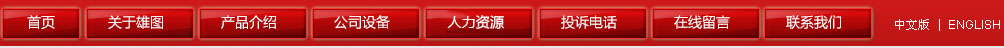 網(wǎng)站首頁 | 關(guān)于雄圖 | 產(chǎn)品介紹 | 公司設(shè)備 | 新聞中心 | 投訴電話 | 在線留言 | 聯(lián)系我們 | ENGLISH 【后臺(tái)管理】